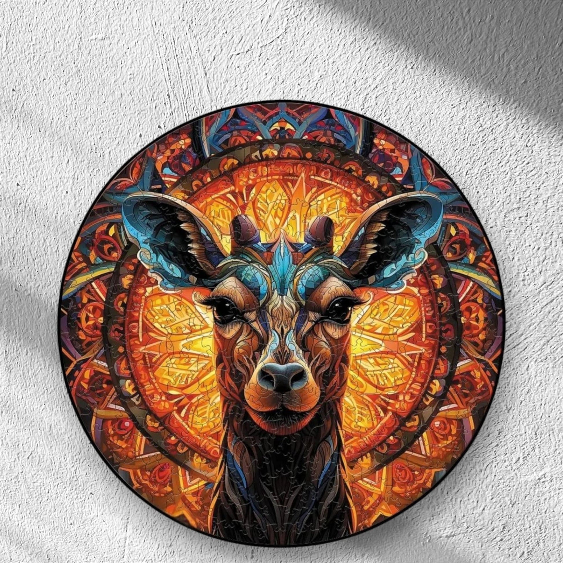 Ce puzzle unique dépeint une biche majestueuse entourée d’un halo lumineux, évoquant la puissance et la sérénité de la nature. Son design minutieux et ses couleurs chatoyantes offrent une expérience immersive et élégante.