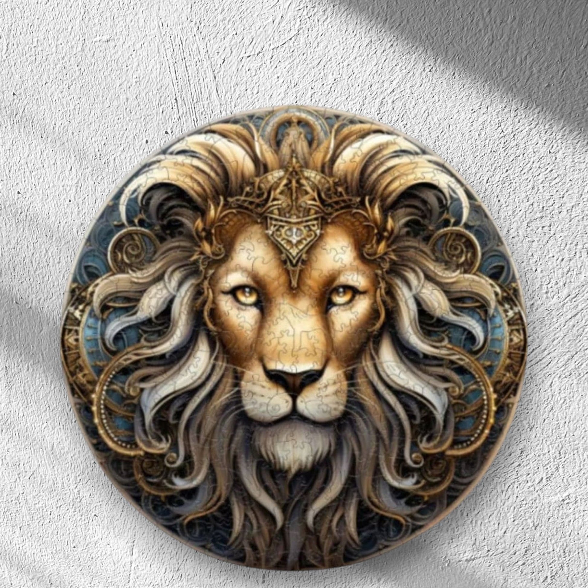 Découvrez Leonis, un puzzle lion roi majestueux qui incarne la puissance et la sagesse des souverains d’antan. Couronné d’or et entouré d’ornements impériaux, ce lion incarne la noblesse et l’immortalité.