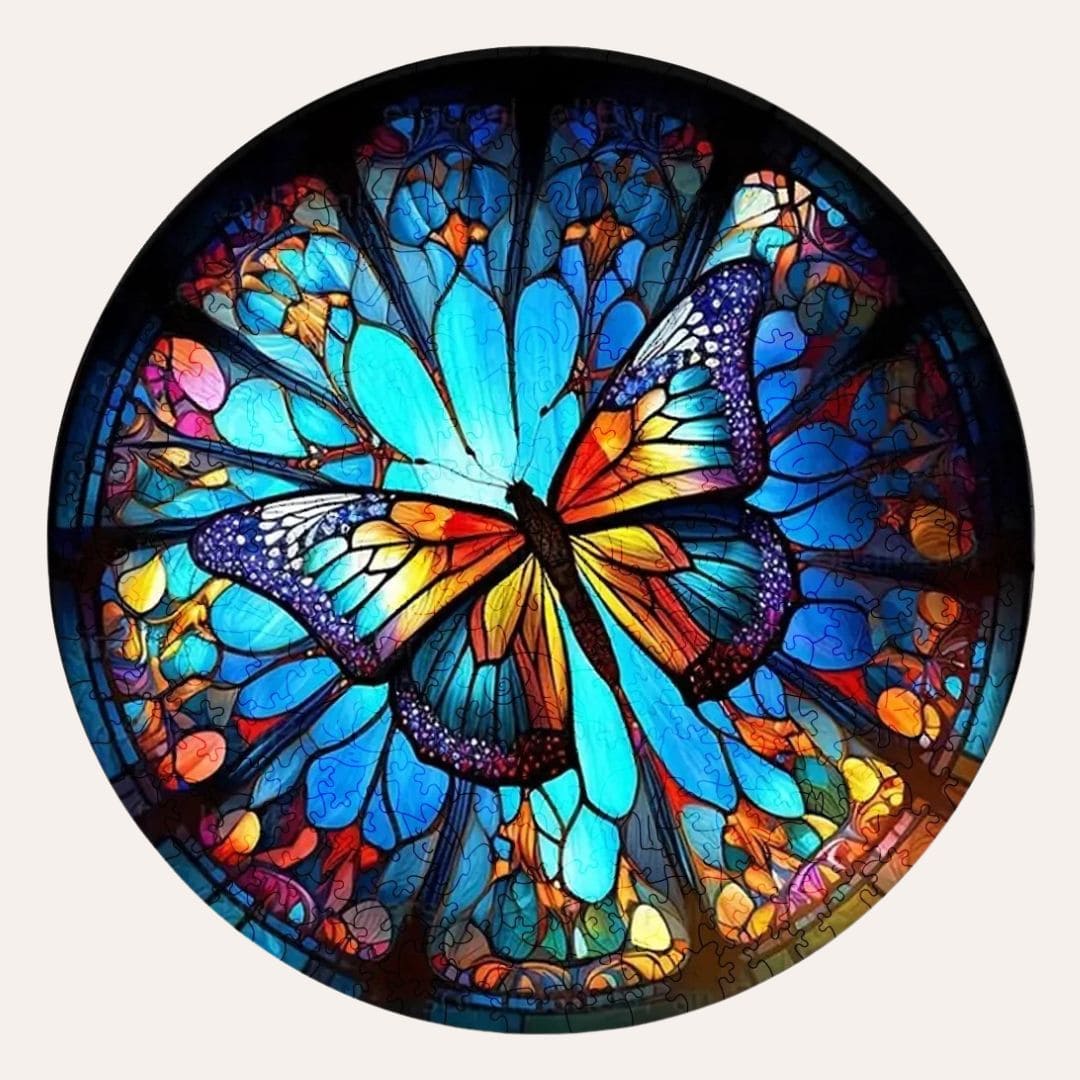 Puzzle Papillon - Azurielle : Éclats de Lumière en Vitrail